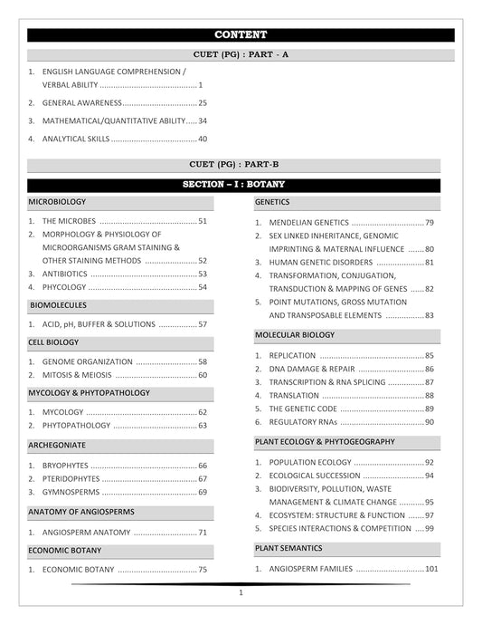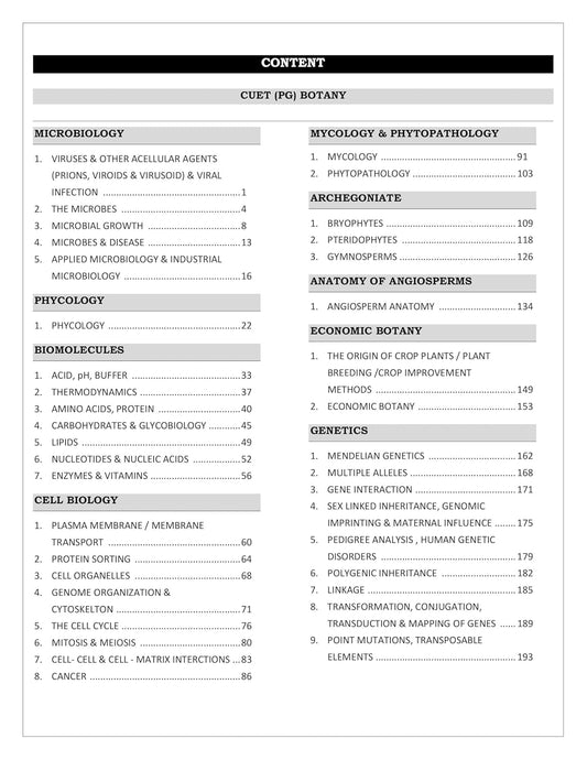 CUET PG Botany Entrance Exam Book 2026