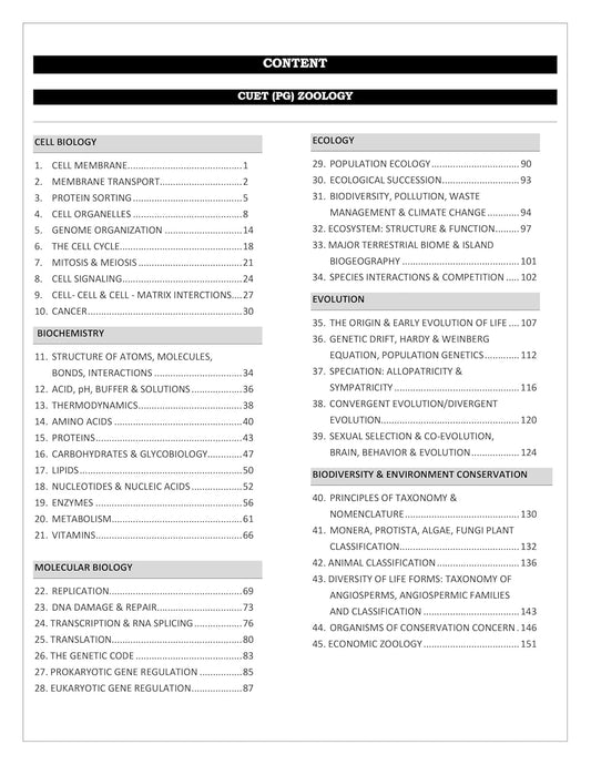 CUET PG Zoology Book Topic-wise Shorted Previous Year (PYQ)